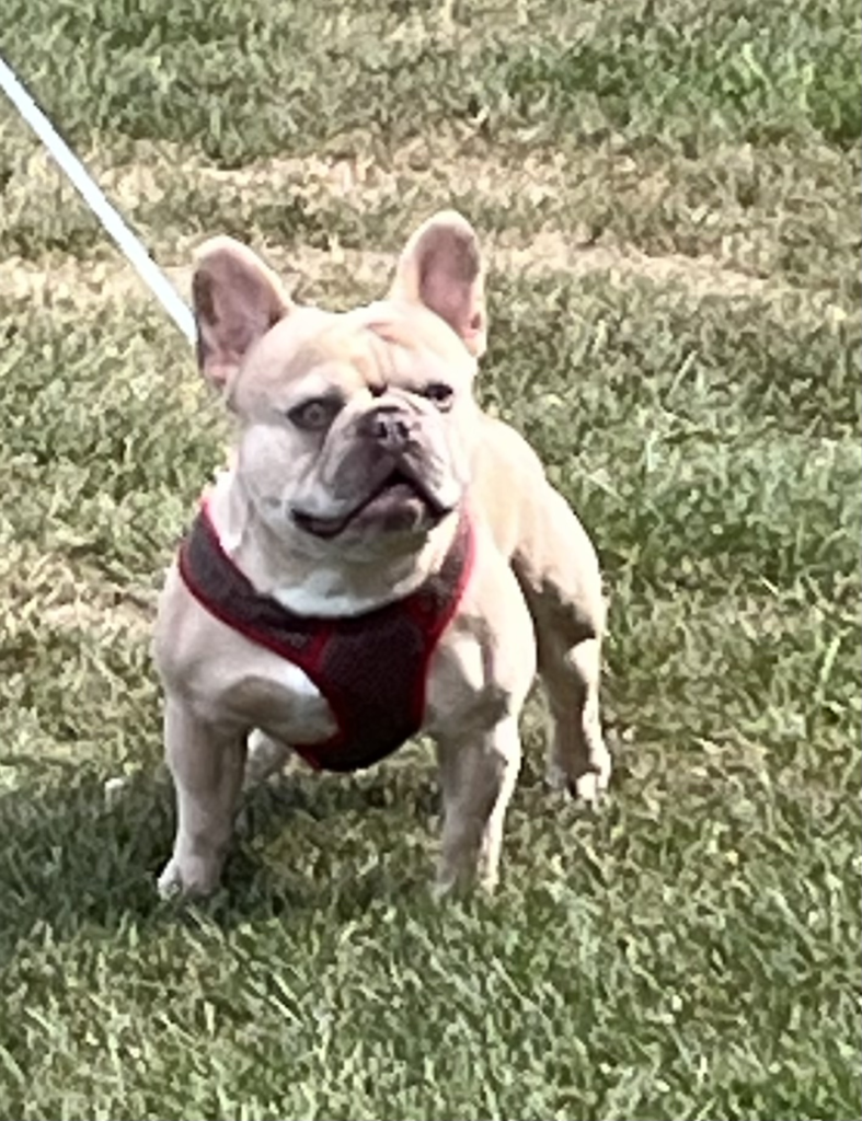 Our foundation male is none other than the stunning Bruno “Magli” (call name Bruno). He is a 3 and ½ year old Lilac/Fawn/Merle male with a dilute Merle pattern expressed in his coat, big, beautiful green eyes, a large muscular head, and a compact, muscular body. His nares are patent and he rarely snores or makes other “typical” Frenchie noises which can be due to labored breathing. He is in amazing health and has no major health disorders. He is 4-panel clear on his genetic health check testing. Bruno is super, engaging, playful, and jovial however he loves nothing more than to curl up and sniggle on the couch and watch TV (his favorite shows are football or hockey games, and animal planet or discovery channel). He rarely barks at all and is very quiet. He loves all people and his favorite past time is meeting new people and getting belly rubs. We are expecting our first litter out of him and our Coco “Chanel” (call name Coco) the second week of April. Please visit our available puppies page for updates and pictures and prices of pups once they arrive. Feel free to contact myself via email or phone with any questions. Contact info found on the contact us page.